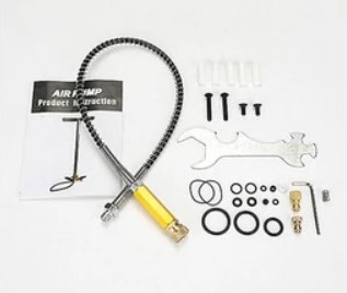 Zestaw zawiera : pompka ręczna wraz z ciśnieniomierzem , zestaw filtrów , akcesoria montażowe , instrukcja w j.angielskim.
