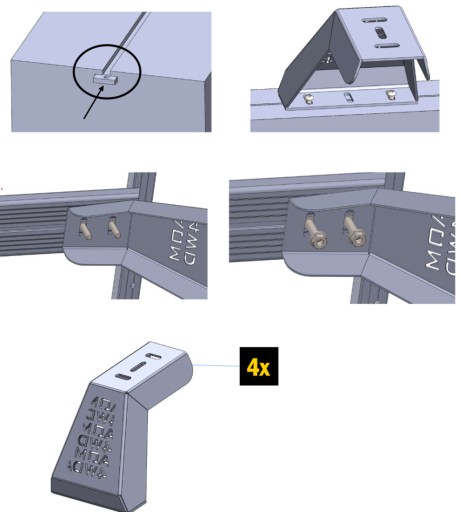 - Nogi platformy są płaskie i mogą być zamontowane tylko do rolety o płaskich brzegach