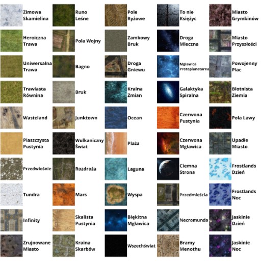 W przypadku mat zmywalnych RPG z naszej oferty wybierasz spośród trwałych, polecanych modeli. Wśród propozycji znajdziesz produkty uniwersalne, bez nadruku, jak i te z klimatycznym wzorem, np. elfickich pustkowi, zimowego krajobrazu, czy kamiennego dziedzińca. Każdą z nich sprzedajemy w zestawie z pisakiem i ściereczką.