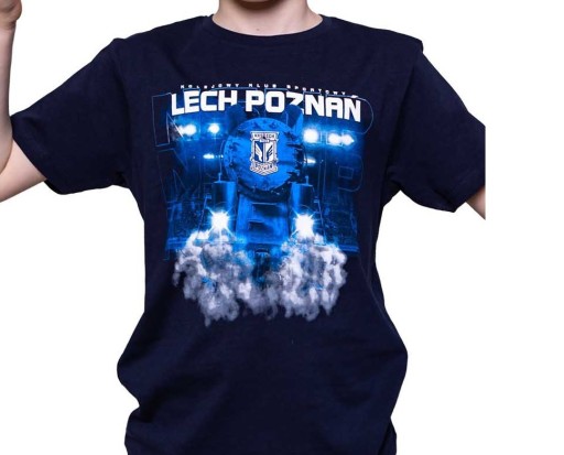Granatowa bawełniana koszulka Lech Poznań z lokomotywa w rozmiarze XXL