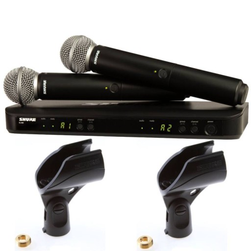 Profesjonalny zestaw bezprzewodowy marki Shure składający się z odbiornika BLX88 i dwóch mikrofonów bezprzewodowych do ręki BLX2/SM58. Jest to analogowy system bezprzewodowy o najlepszej jakości transmisji radiowej i paśmie przenoszenia audio w swojej klasie.
