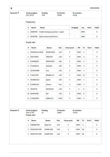 - naprawy blacharsko-lakiernicze wykonane w ASO,