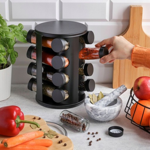 Zainwestuj w obrotowy stojak na przyprawy SPACY i ciesz się wygodą, elegancją oraz porządkiem w Twojej kuchni. Zamów już teraz i doświadcz różnicy, jaką może zaoferować Ci ten przyprawnik.