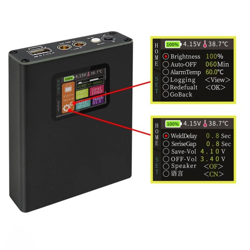 Портативный небольшой аккумуляторный сварочный аппарат с цветным экраном. Регулируемая мощность.