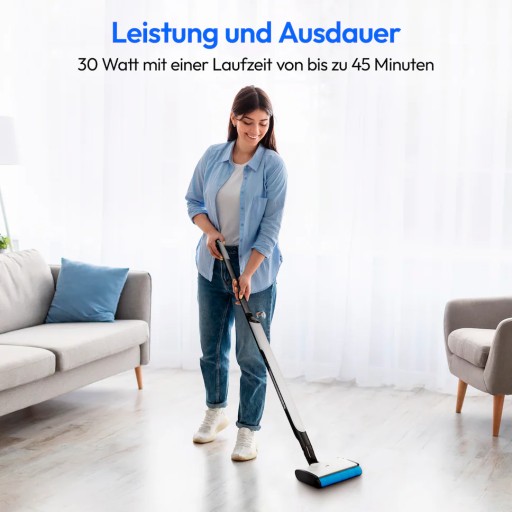 Dzięki mocy 30 W odkurzacz do podłóg czyści szczególnie dokładnie i jest szczególnie trwały. Dzięki czasowi pracy do 45 minut na jednym ładowaniu akumulatora możesz z łatwością odkurzyć kilka pomieszczeń lub wszystkie piętra za jednym razem, w zależności od przestrzeni mieszkalnej.