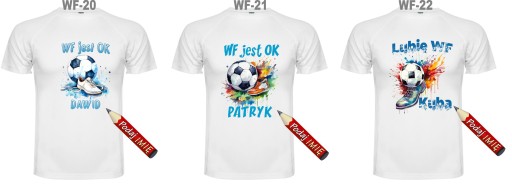 Koszulka sportowa futbol piłka nożna na WF+ imię 146/152 cm Kibic Wzory