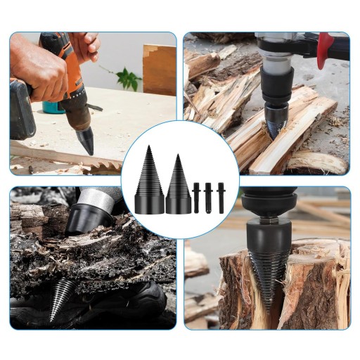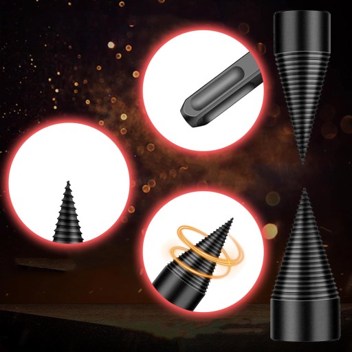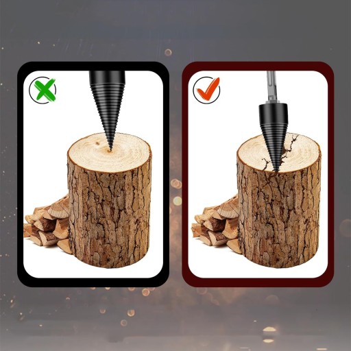 Sposób użycia: Wystarczy zainstalować wiertło w wiertarce i wywiercić drewno, a drewno opałowe łatwo się rozłupie. Brak ruchomych ostrzy oraz obaw o dzieci wymachujące siekierą.