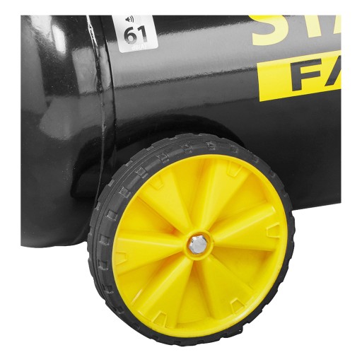 Kompresor ma konstrukcję ułatwiającą transport. Solidne kółka i wygodny uchwyt powodują, że bez problemu przeniesiesz go do kolejnego miejsca pracy.