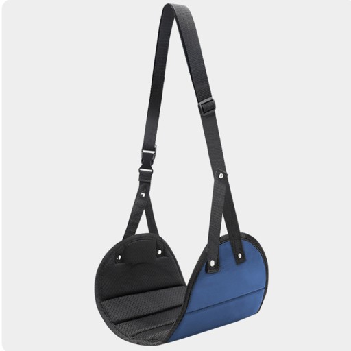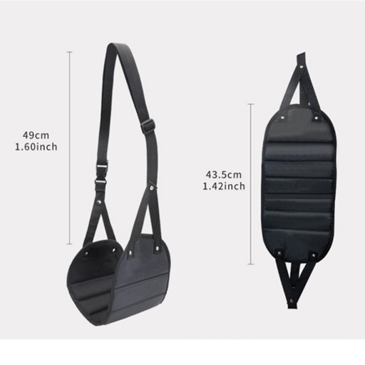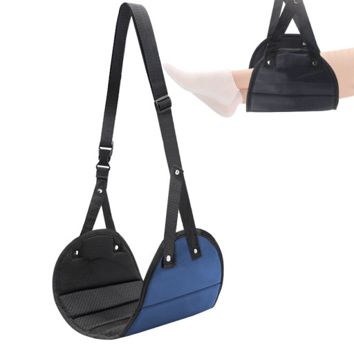 Wystarczy zawiesić ten podróżny podnóżek do wspornika stołu tacy, a następnie postawić na nim stopę.