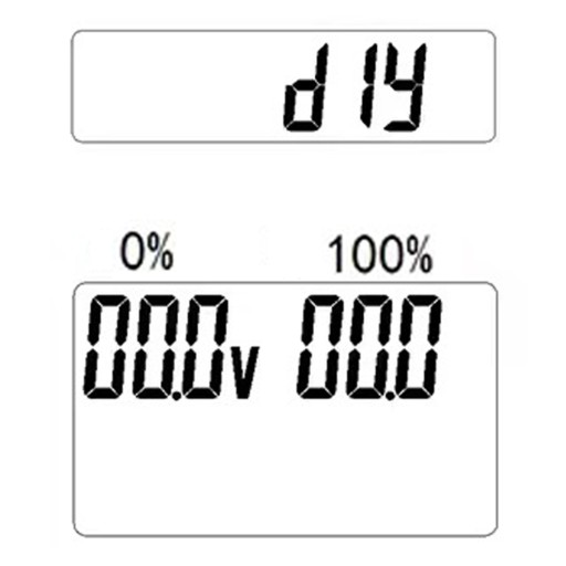 1. W stanie wyłączonym naciśnij i przytrzymaj przycisk, następnie włącz miernik, wejdź do interfejsu wyboru typu baterii, zwolnij przycisk, a następnie naciśnij krótko przycisk, aby przejść do interfejsu DIY.