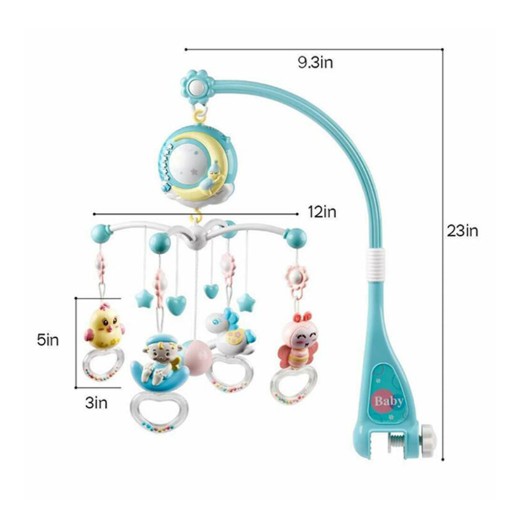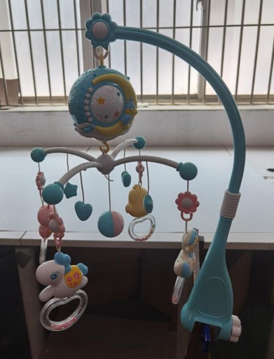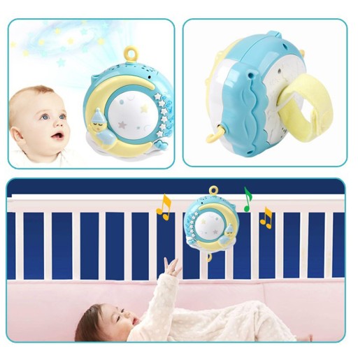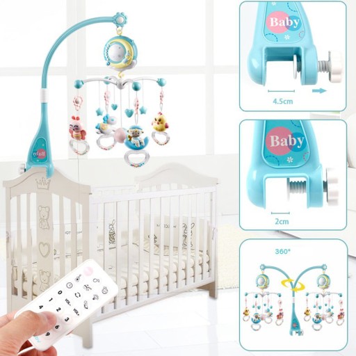 - Pozytywkę i 4 grzechotki w Musical Crib Mover można zdejmować i można ich używać osobno jako gryzaka dla dziecka, odtwarzacza muzycznego, projektora, lampki nocnej i grzechotki dla dziecka. Może towarzyszyć dziecku przez całe życie dzieciństwo.