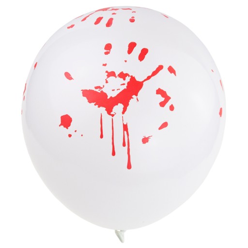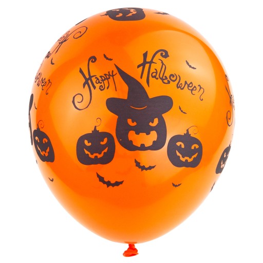 ☑️ Nadrukowane Balony: 24 sztuki - w tym 8 pomarańczowych z dyniami, 8 białych z plamami krwi oraz 8 czarnych z napisem "Happy Halloween".