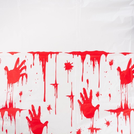 ✅ Obrus zaplamiony krwią: Wykonany z folii, łatwy w utrzymaniu w czystości, pozwoli zetrzeć uporczywe plamy i można użyć go ponownie.
