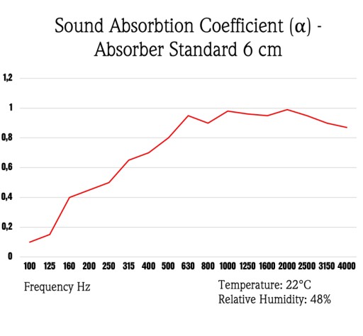 - Bardzo wysoki współczynnik pochłaniania dźwięku w zakresie średnich i wysokich częstoltiwości.