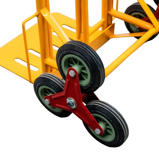 Dzięki specjalnie zaprojektowanym POTRÓJNYM KOŁOM, nasz produkt z łatwością pokonuje stopnie, krawężniki, podesty oraz nierówności terenu.