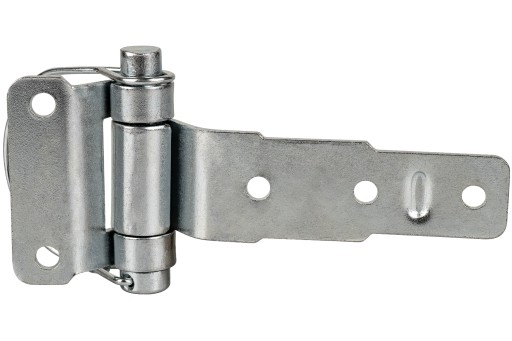 Zawias burty przyczepy z kabłąkiem. Zawias stalowy zabezpieczony ocynkiem. Długość: 140 mm.