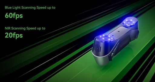 Creality Raptor pracuje w dwóch trybach: niebieskiego lasera i NIR (podczerwień), co umożliwia skanowanie różnego rodzaju przedmiotów w każdych warunkach.