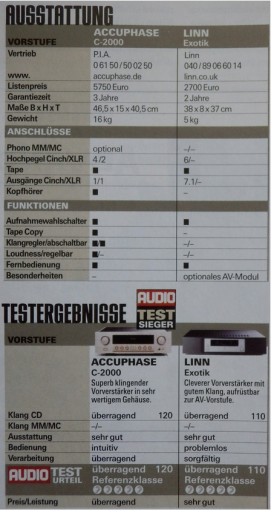 Jako nowy kosztował 2700 euro. Bardzo wysoko oceniany przez pisma audio na całym świecie . Przykładowo w niemieckim Audio został zaliczony do najwyższej klasy referencyjnej "Referenzklasse" i zdobył aż 110 punktów za dźwięk oraz otrzymał rekomendację ( czerwony kwadracik) jako "Best Buy" (najlepszy zakup czyli najlepsza relacja ceny do jakości sprzętu). - patrz zdjęcia.