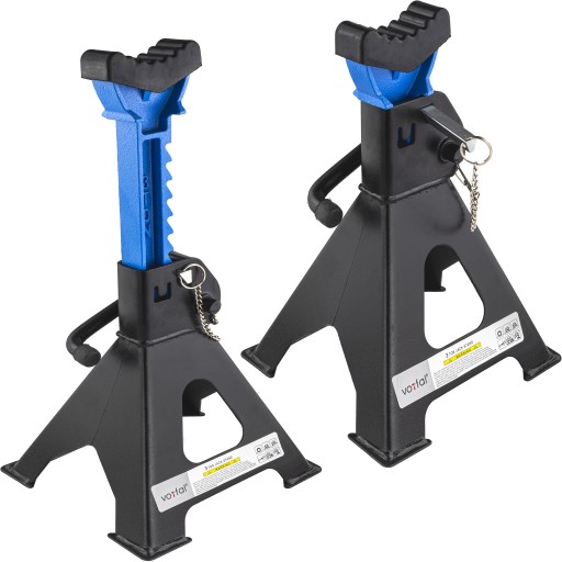 2 SZTUKI KOBYŁKI / PODSTAWKI WARSZTATOWE POD SAMOCHÓD WZMOCNIONE Z BLOKADAMI ZABEZPIECZAJĄCYMI - PIN-AMI, GUMOWE NAKŁADKI Z UDŹWIGIEM 3 TONY
