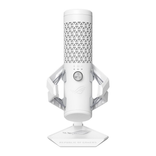 Profesjonalny kardioidalny mikrofon pojemnościowy do gier wyposażony jest w kapsułę pojemnościową 25 mm klasy studyjnej, częstotliwość próbkowania 192 kHz / 24 bity, filtr górnoprzepustowy, wbudowany filtr pop, wysokiej jakości metalowe mocowanie przeciwwstrząsowe i oświetlenie ASUS Aura Sync RGB.