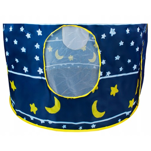 Namiot wyposażony jest w wejście i dwie boczne siateczki dla lepszej wentylacji powietrza oraz możliwości obserwowania swojej pociechy