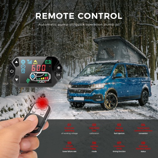 Nasz system ogrzewania postojowego na olej napędowy jest wyposażony w inteligentny monitor LCD i zdalne sterowanie. Po aktywacji timer i termostat grzejnika można regulować automatycznie lub ręcznie za pomocą wbudowanego panelu LCD. Co więcej, temperaturę można zmieniać za pomocą pilota, dzięki czemu można ogrzać samochód przed wejściem do niego w chłodny zimowy poranek.