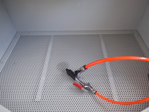 Myjka jest wyposażona w pistolet dwu funkcyjny z którego wydobywać się może samo powietrze lub powietrze z środkiem myjącym. Dzięki temu umyty przedmiot można osuszyć sprężonym powietrzem.