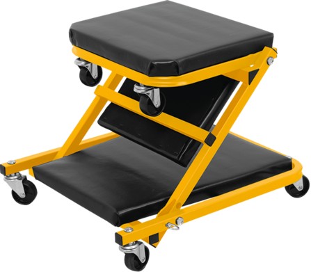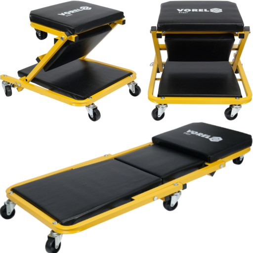 Leżanka warsztatowa, która po złożeniu pełni fukcję siedziska.