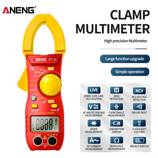 - Wielofunkcyjny miernik cęgowy - multimetr, elektryczny długopis testowy i latarka. Wyposażone w dwa miarki są łatwe w instalacji i obsłudze. Miernik cęgowy może być szeroko stosowany w testach elektrycznych, naprawach samochodów, pomiarach przemysłowych itp.