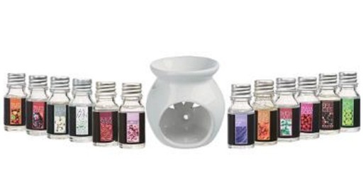 Zestaw zapachowy kominek + olejki zapachowe 12 szt