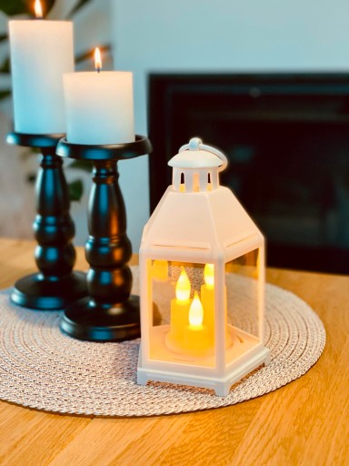 ✅Eleganckie Wykończenie: Wysokiej jakości tworzywo sztuczne i nowoczesny design lampionu sprawiają, że jest on estetyczny i trwały. Szczególną uwagę przyciąga świeczka zamontowana w środku, w której znajduję się źródło światła.