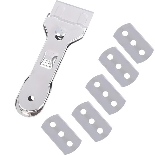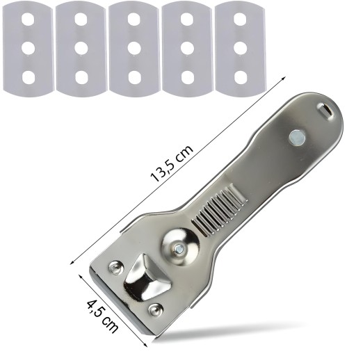 Zestaw skrobaka z pięcioma ostrzami to zestaw, który zawiera pięć ostrzy, które można używać do różnych zastosowań. Ostrza są twarde a zarazem delikatne do czyszczonej powierzchni. Możesz nimi usunąć nawet najbardziej uciążliwe zanieczyszczenia z powierzchni płyty ceramicznej/indukcyjnej.