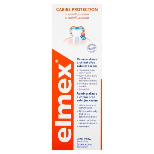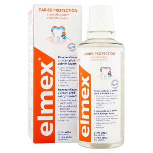 Reminalizuje szkliwo i skutecznie chroni przed próchnicą. Stosowany wraz z pastą elmex® zapewnia wyższą ochronę przed ubytkami, co potwierdzono w badaniach naukowych. Aminofluorek wzmacnia szkliwo i zapewnia ochronę przed próchnicą zębów, szczególnie w obszarach niedostępnych dla szczoteczki. Zapewnia ochronę, gdy jesteś poza domem i nie masz możliwości umycia zębów. Próchnica jako proces długofalowy, nie pojawia się z dnia na dzień. By ją zatrzymać należy podjąć działania już podczas wczesnych faz powstawania ubytków. Wysoce skuteczna formuła z aminofluorkiem tworzy wokół zębów ochronną warstwę wapniowo-fluorową, która remineralizuje i chroni przed próchnicą. Dociera także do miejsc trudno dostępnych dla szczoteczki do zębów, które są bardziej podatne na próchnicę.