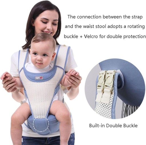 Oddychające i odświeżające Tkanina tego nosidełka dla niemowląt z siedziskiem biodrowym jest bardzo oddychająca co może sprawić że dziecko będzie miało świeże i wygodne otoczenie dzięki czemu zarówno matka jak i dziecko mogą zachować szczęśliwy i komfortowy nastrój dzięki tej ergonomicznej chustce z przodu i tyłu. Ergonomiczna konstrukcja Nosidełko dla niemowląt z taboretem biodrowym zostało zaprojektowane aby pomóc dziecku utrzymać prawidłową pozycję siedzącą we wszystkich pozycjach noszenia takich jak dziecko skierowane do środka dziecko skierowane do góry i noszenie pleców. Nosidełko dla niemowląt jest odpowiednie dla dzieci w wieku 336 miesięcy. Wielofunkcyjne To nosidełko dla niemowląt jest zdejmowane można go używać jako całego plecaka dla niemowląt z siedziskiem biodrowym zaspokoi potrzeby dziecka na różnych etapach. Obwód talii tego taboretu wynosi 75110 cm. TKANINA BAWEŁNIANA I ULEPSZONE KLAMRY Wykonany jest z przyjaznej dla skóry i wytrzymałej tkaniny bawełnianej. Ulepszona klamra bezpieczeństwa różni się od tradycyjnej klamry luzu aby zapewnić że nosidełko dla niemowląt jest mocno związane i stabilnie zamocowane. Funkcja ochrony Kiedy trzymasz dziecko na boki oddychający wygodny uchwyt dla niemowląt ma miękką i dobrze podtrzymującą poduszkę pod głowę która może chronić głowę i szyję dziecka.
