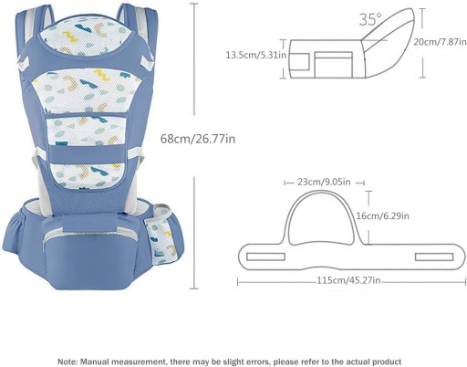 Oddychająca bawełna Wysokiej jakości tkanina bawełniana miękka i wygodna z kieszeniami w talii dla łatwego przechowywania małych przedmiotów. Ergonomia Nosidełko dla niemowląt może być noszone jako nosidełko na brzuchu pośladkach i plecach. Ergonomiczne siedzisko kubełkowe dopasowuje się do rosnącego dziecka i zapewnia że jest ono w naturalnej pozycji przysiadowej pozycja M od noworodka do malucha 32 do 20 kg Odpinany panel zagłówka Odpinany zagłówek jest dostosowany do różnych wzrostu dziecka od noworodka do dorastającego dziecka skierowanego do wewnątrz przez jakiś intymny czas lub patrzenia poza świat. Pasek i stołek mogą być używane osobno Wielofunkcyjny 3 tryby można dowolnie przełączać tryb pojedynczego taboretu tryb paska wielofunkcyjny pasek w talii łatwy do wymiany spełnia potrzeby ponadczasowego użytkowania i łatwy do demontażu dla mam. Szeroki pas pomaga rozproszyć nacisk matki a niezwykle miękki i oddychający materiał wypełniający zmniejsza obrażenia ramion. Ponadto stołek biodrowy sprawia że Twoje dziecko jest bardzo wygodne zmniejszając w ten sposób obciążenie ramion.