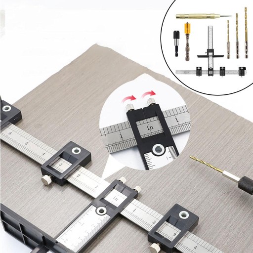 Opis: Dziurkacz Jig narzędzie Bit szafka sprzęt do wiercenia w drewnie narzędzie do obróbki drewna linijka Wielofunkcyjny szablon do precyzyjnego montażu uchwytów / gałek na szufladach i drzwiach, wspornik w kształcie litery L i górne śruby do utrzymania go w poziomie, dwie duże przednie śruby motylkowe blokowane w pozycji pionowej. Prowadnice wiertarskie zapewniają dokładne ustawienie podczas wiercenia otworów w drewnie. Przednie mocowanie jest łatwe do zamocowania. ruchome wiercenie jest łatwe w montażu. Lekki i trwały, łatwy w utrzymaniu i przenoszeniu.