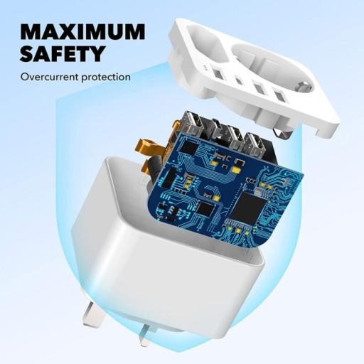 - nasz adapter podróżny UK posiada 3 porty ładowania USB o maksymalnej mocy wyjściowej 3,4A oraz port ładowania Type-C o maksymalnej mocy wyjściowej 5V 3A. Kompatybilny z większością akcesoriów podróżnych i urządzeń USB.