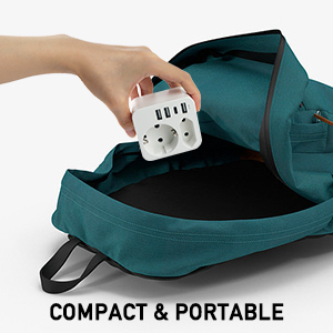- Łatwy do przenoszenia: Adapter wtyczki ma wymiary 6,5 x 6,8 x 7 cm i może być używany w dowolnym miejscu. Jest wystarczająco mały i przenośny, aby zmieścić się w plecaku lub teczce. Interfejs ładowania 6 w 1 może lepiej zaspokoić Twoje potrzeby w podróży i nie musisz nosić dodatkowych adapterów lub gniazd, oszczędzając dużo miejsca w bagażu.
