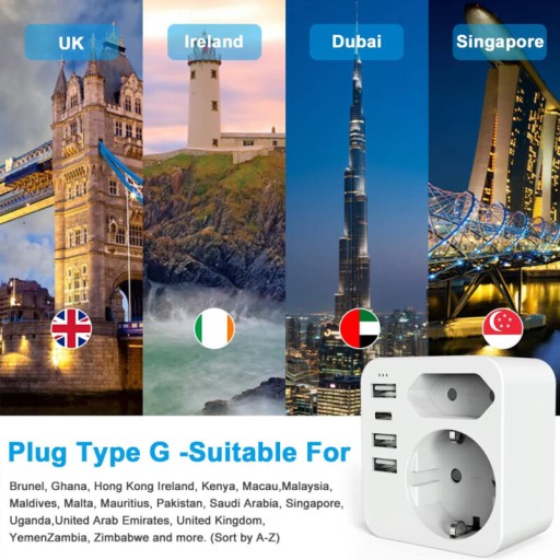 - Adapter wtyczki podróżnej typu G: Nasza wtyczka podróżna UE-Wielka Brytania jest idealnym adapterem sieciowym dla wszystkich krajów z wtyczkami sieciowymi typu G dla Anglii, Irlandii, Szkocji, Malediwów, Hongkongu, Zjednoczonych Emiratów Arabskich i innych.