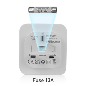 - Zapewnienie jakości: Adapter podróżny UK jest dostarczany z bezpiecznikiem. Jeśli całkowita moc przekroczy 3250 W, bezpiecznik przepali się i zapobiegnie uszkodzeniu urządzeń w wyniku przeciążenia. Standard bezpiecznika to 250V 13A, a nasze produkty przeszły certyfikację CE i UKCA, wykorzystując trudnopalne materiały PC i ocenę ogniową UL94V0, zapewniając najwyższe bezpieczeństwo i spokój ducha!