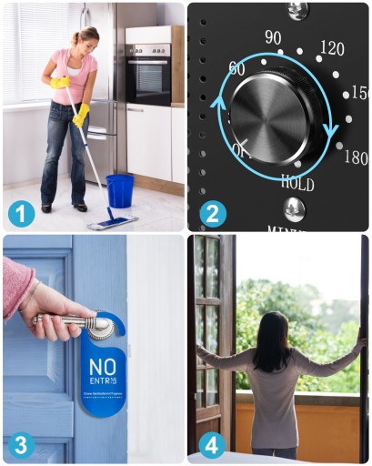 ✅ Łatwy w użyciu - wystarczy włączyć minutnik, maksymalny czas to 180 minut. Po zakończeniu pracy wietrzyć przez 30 minut przed ponownym wejściem do pomieszczenia.