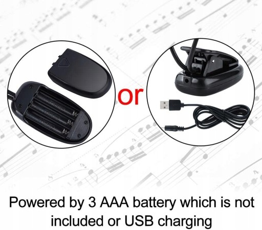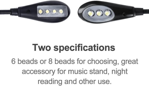 Podwójne regulowane rami Dziki podwójnemu regulowanemu ramieniu swobodnie si zgina moesz zgi klips muzyczny na lampie LED pod dowolnym ktem zgodnie z wasnymi potrzebami. Wysoka jasno Do wyboru jest 6 koralików lub 8 koralików. Klips na lampie LED moe by adowany za pomoc baterii nie jest doczony lub kabla USB. Moe zapewni wysok jasno. Klips na stojaku podstawowym przenona podstawka pod muzyk LED ma mini rozmiar i jest atwa do przenoszenia mona j przypi na stole wsporniku i wszdzie pod rk. Szerokie zastosowanie Klips na lampie LED jest doskonaym dodatkiem do stojaka muzycznego czytania nocnego i innych zastosowań. MATERIA WYSOKOGATUNKOWY MATERIA Wykonany z wykwalifikowanego plastiku i elektroniki klips na lampce jest lekki i przenony solidny mocny i trway w uyciu.