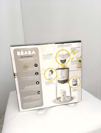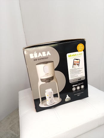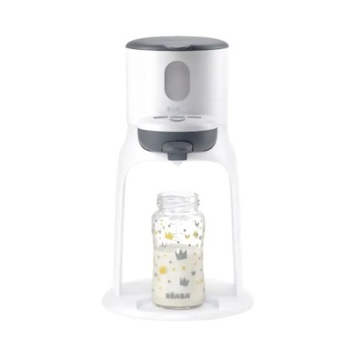 Bib’Expresso® to urządzenie 2 w 1 do przygotowywania posiłków, francuskiej marki BEABA. Pozwala błyskawicznie przyrządzić mleko dla maluszka, używając tylko jednej ręki (każda mama wie, jak praktyczne jest to rozwiązanie). Sprzęt przypomina kształtem ekspres do kawy (stąd jego nazwa), ale jest bardziej ergonomiczny, kompaktowy i łatwiejszy w przechowywaniu. W górnej części zawiera pojemnik do podgrzewania wody z praktycznym okienkiem do podglądu jej poziomu. Wodę można podgrzać do temperatury pokojowej, tj. 22°C lub temperatury ciała, tj. 37°C.