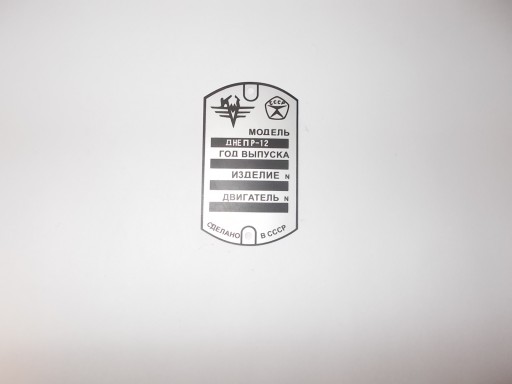 DO MOTOCYKLI ; DNIEPR MT 12 - NOWA FABRYCZNIE , ALUMINIOWA , TABLICZKA ZNAMIONOWA RAMY MOTOCYKLA . CENA DOTYCZY 1 SZT .