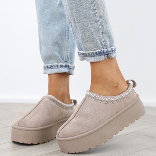 Beżowe botki śniegowce damskie platforma niskie mukluki TL286-39