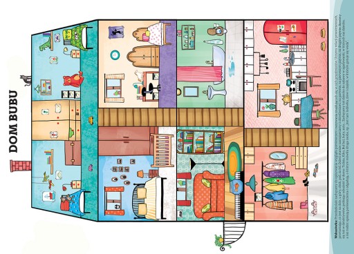 Bubu to sympatyczny chłopczyk, znany już z pierwszej książeczki o jego przygodach - Bubu uczy się mówić. A kuku! Tym razem możecie wybrać się z wizytą do domu Bubu. Dziecko może zwiedzić wszystkie pomieszczenia, poznać bliżej członków rodziny Bubu i zobaczyć, jakimi ciekawymi sprawami się zajmują. Ale... gdzie jest Bubu? Poszukajcie go razem i sprawdźcie, gdzie się schował!