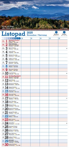 - układ: miesiąc na jednej stronie