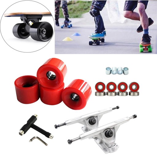 Solidna Aluminiowa Ciężarówka Do Deskorolki 7-calowy Klucz Do Kółek Rolka, Część Srebrno-Czerwona
