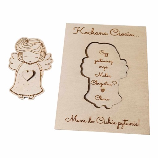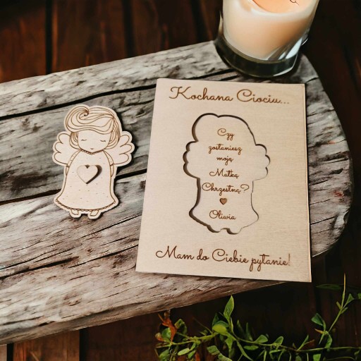 Drewniane zaproszenie prezent to doskonały sposób na wyrażenie prośby o zostanie rodzicem chrzestnym naszej pociechy. Zostało wykonane z najwyższej jakości sklejki brzozowej. Wszystkie cytaty i teksty można dowolnie spersonalizować. Po zakupie prosimy o przesłanie wszystkich informacji niezbędnych do personalizacji zaproszenia.
