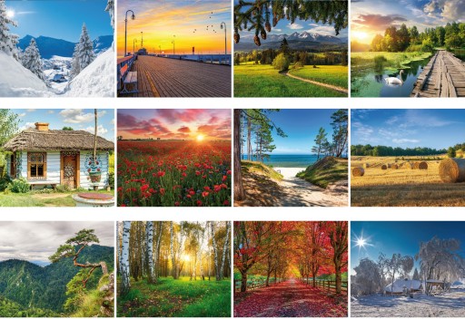 Każdy miesiąc ozdobiony jest innym rodzimym widoczkiem